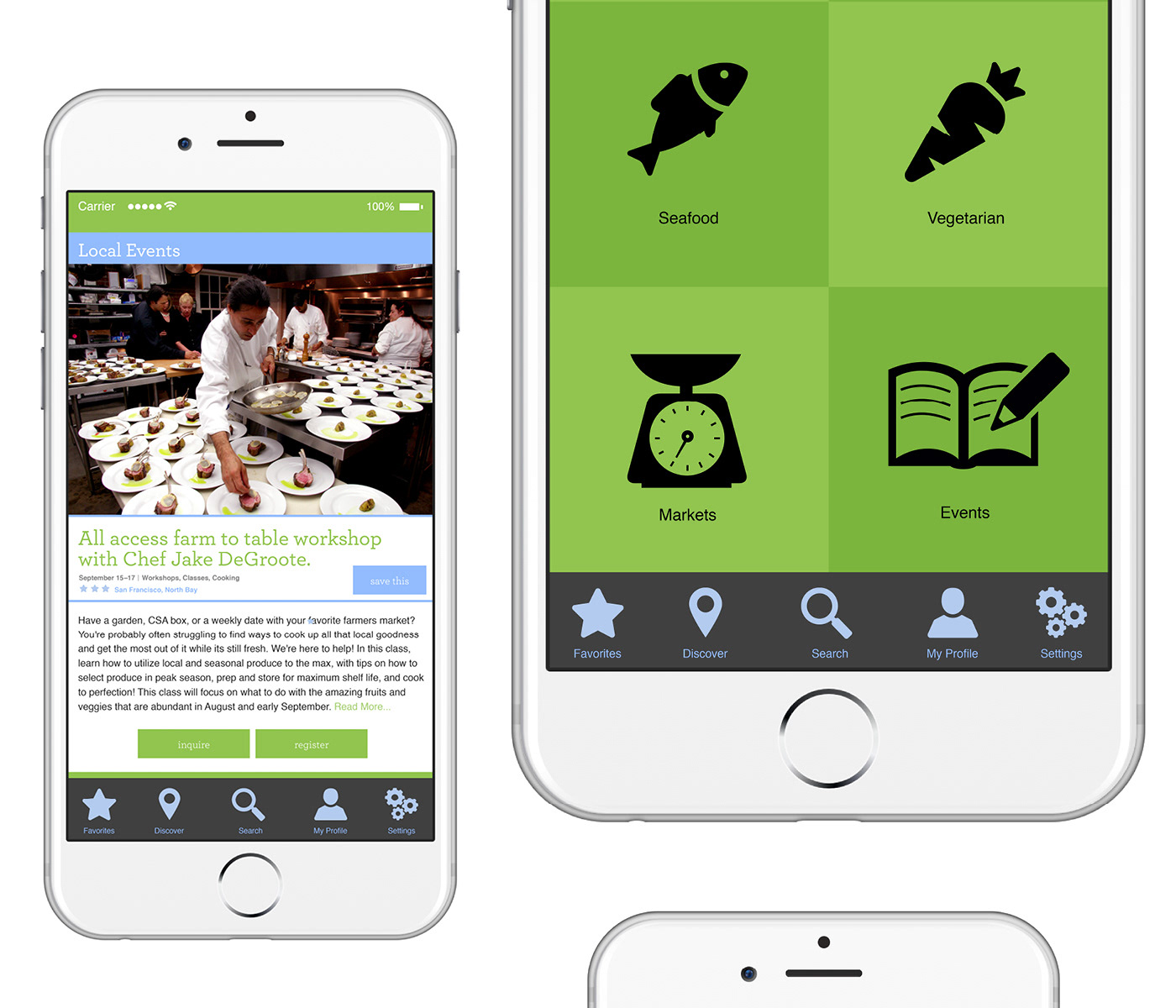 Visual design for an app specializing in local farm to table cooking, restaurants, farmers markets, grocery and classes. Currently in development. All photography by Christopher Kosek