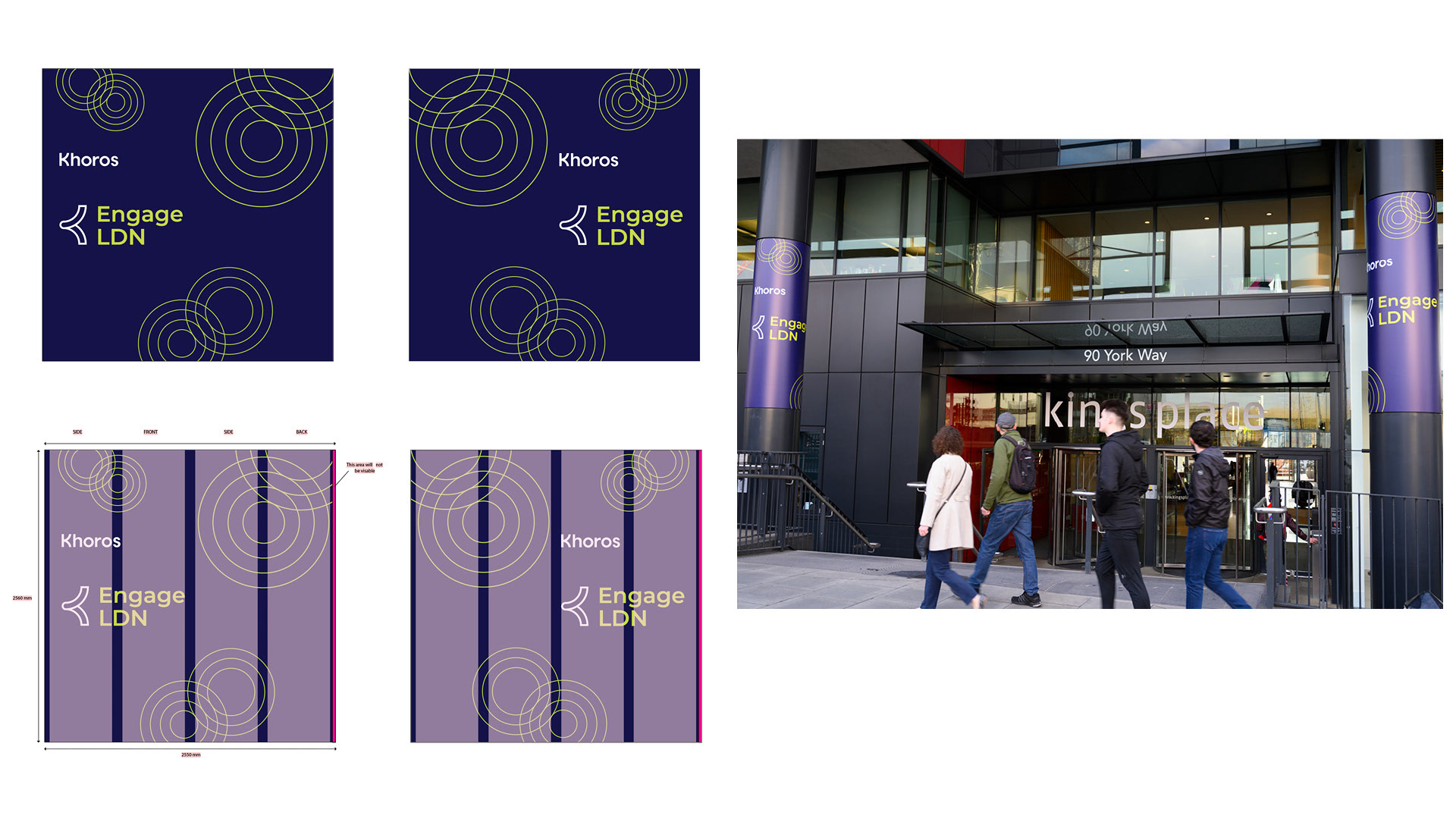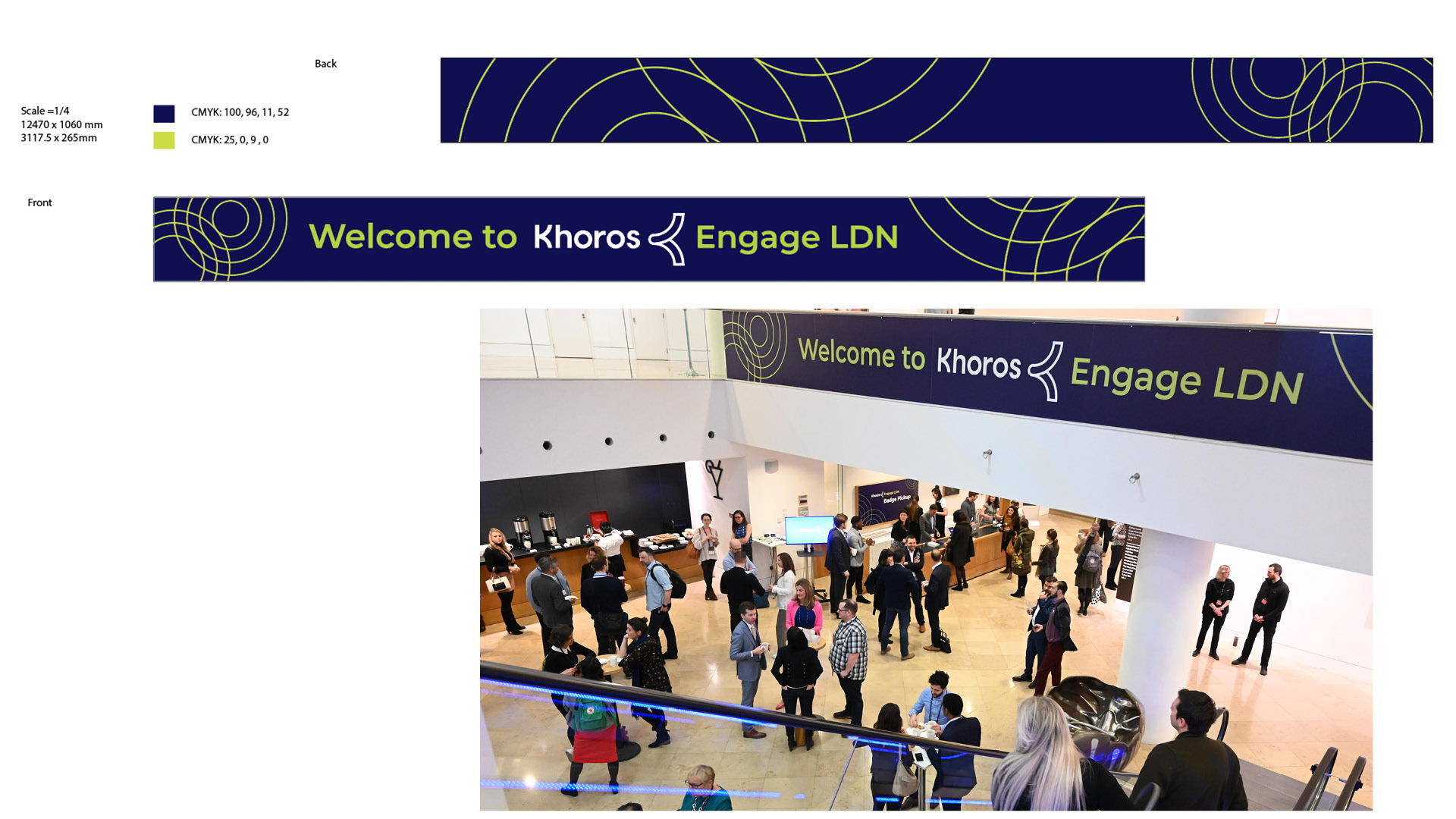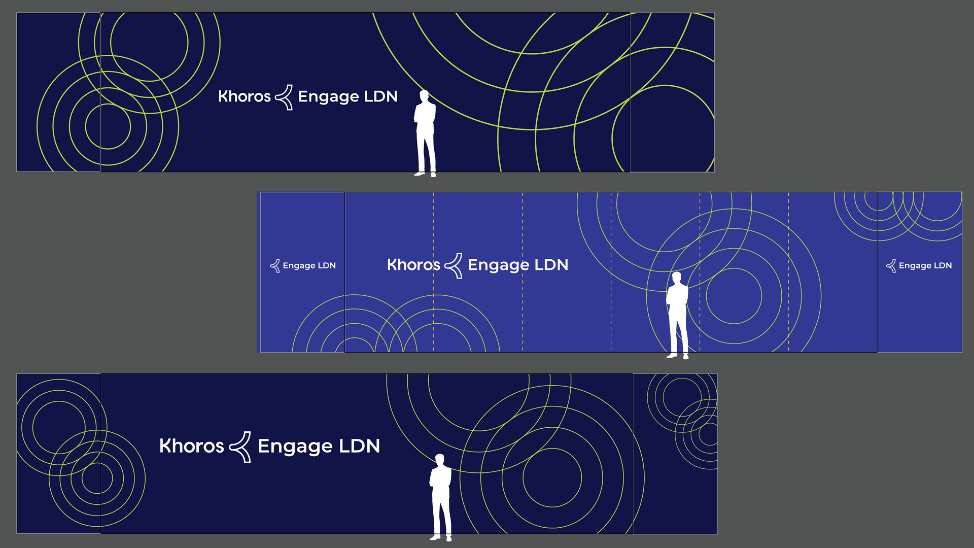 This space was to be used for breakout sessions and panel discussion. The presentation screen was the main centerpiece, So i designed these two vertical banners to frame it with our brand. It was the first instance where the need for a more compact, stacked Engage lockup was used.