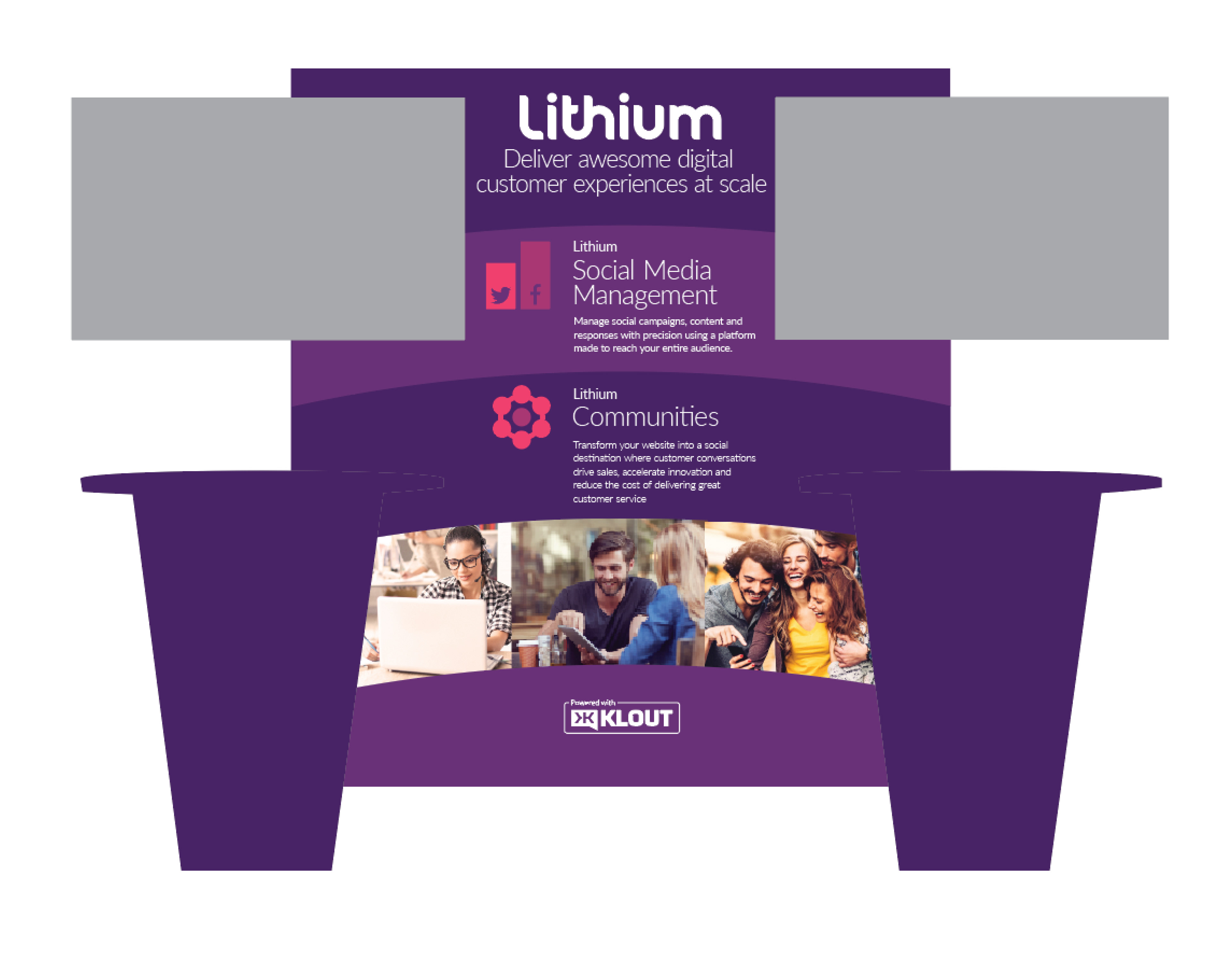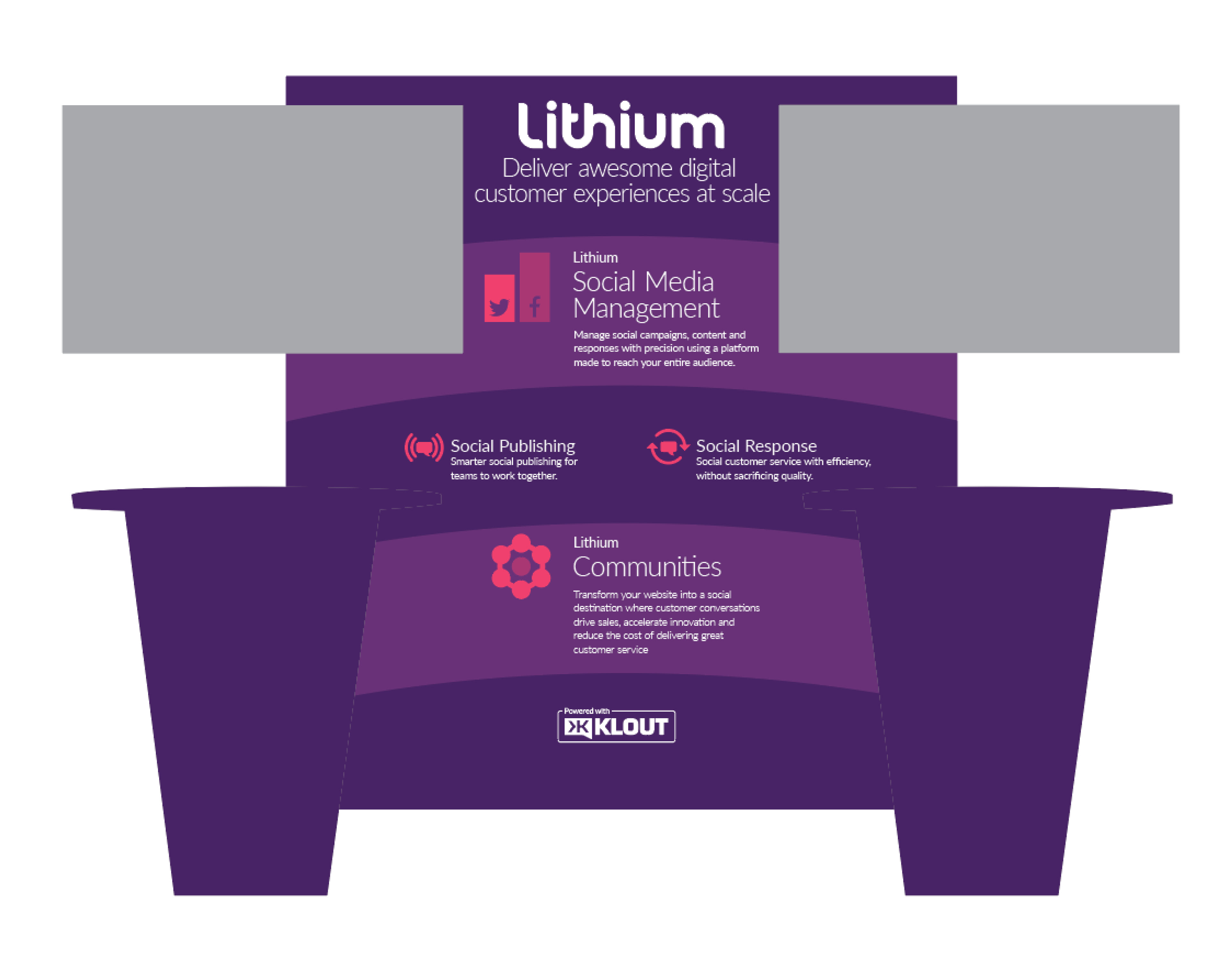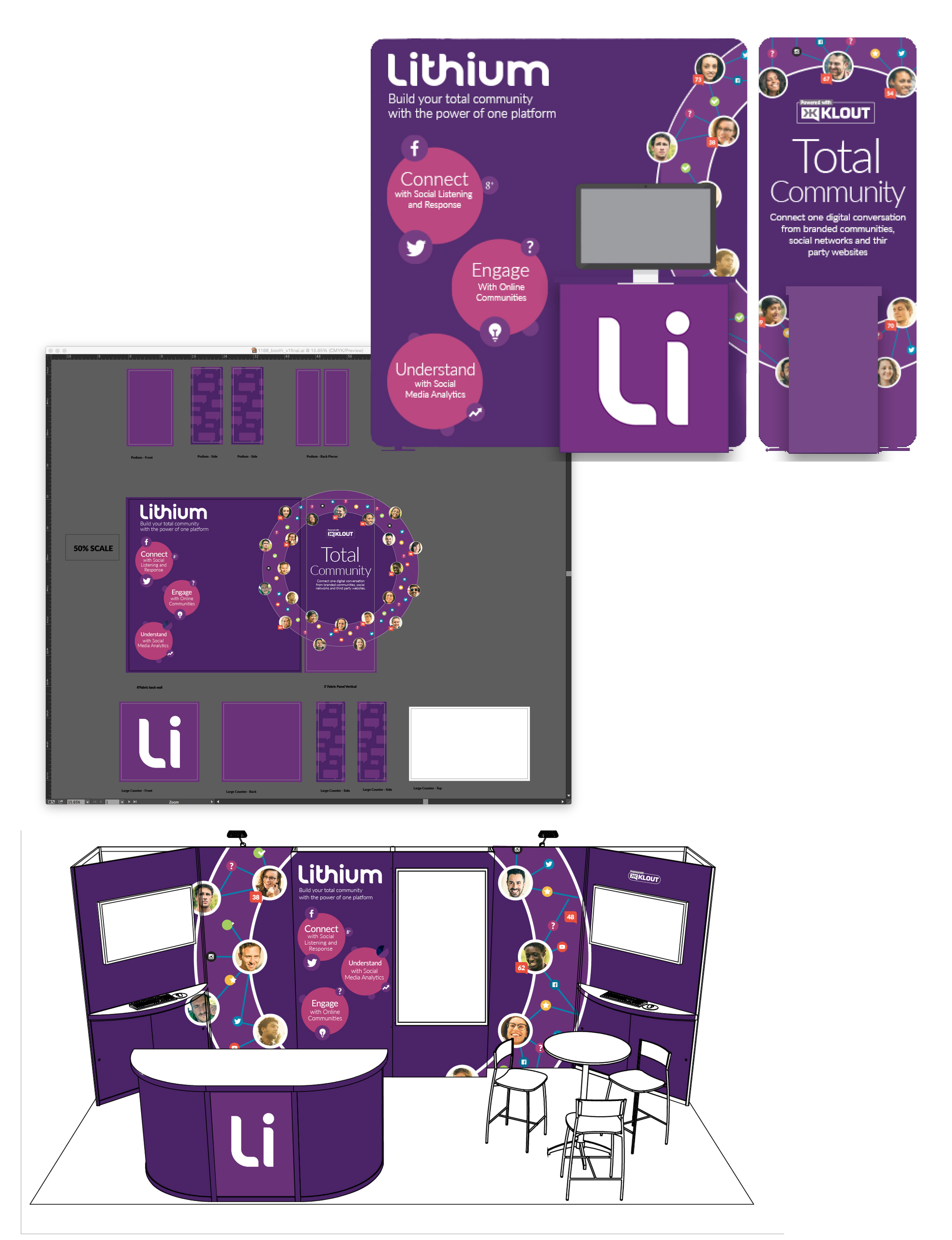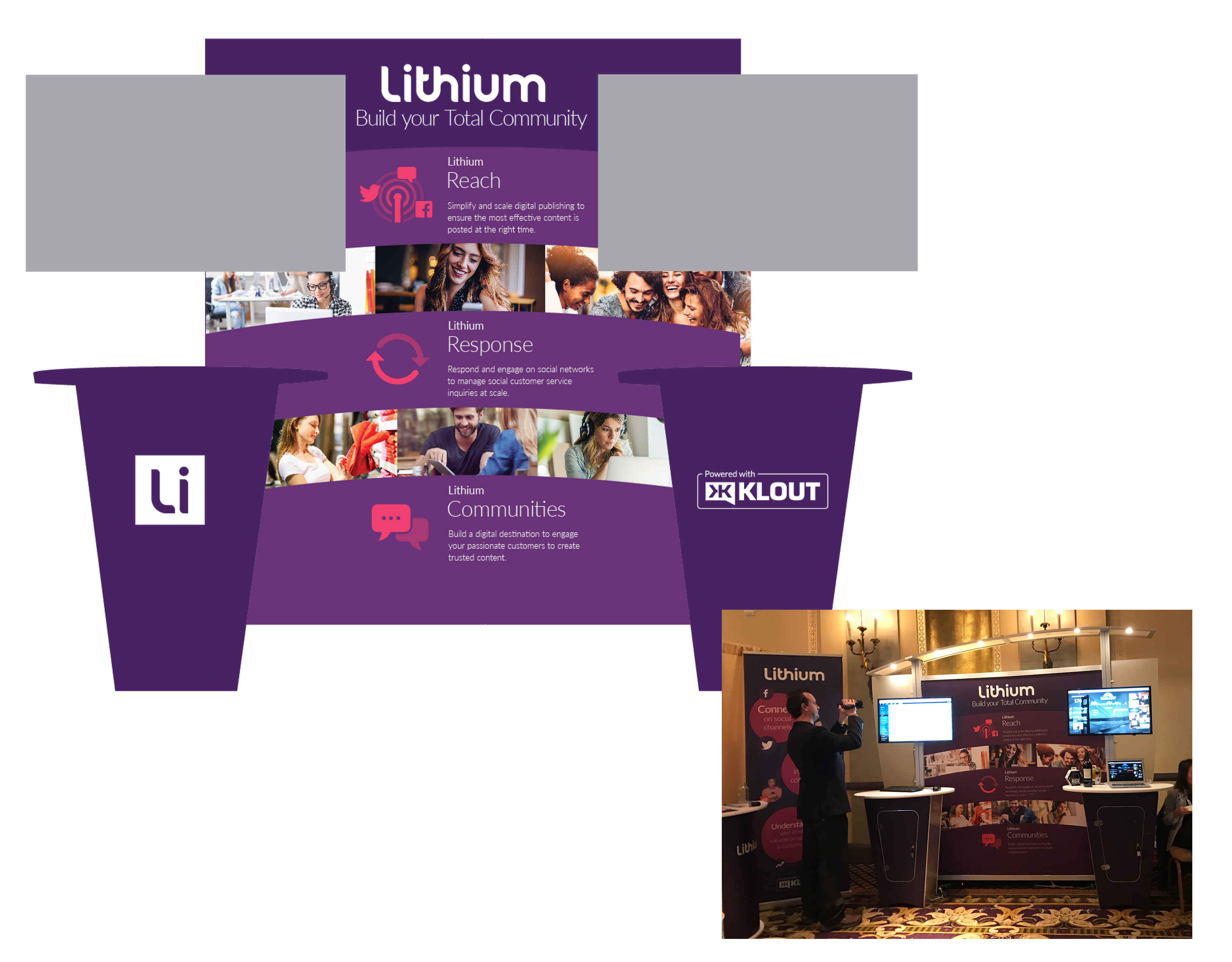 Trade show booth design for Field Marketing and Sales departments. Designs were based off of current product messaging and brand campaigns around Lithium's Community and Social Media Management products.